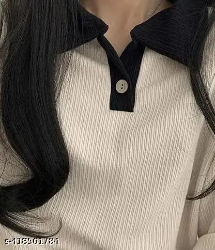 Name : Korean Style T-shirt With Collar Style Cotton Blend Crop Top Comfy Trendy Women Top & Tunics | Half Sleeves T-Shirt for Women & Girl’s