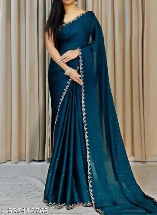 Name : Trending New Satin Silk Saree With Beads And Stone Work Border Lace And Fancy Unstiched Blouse